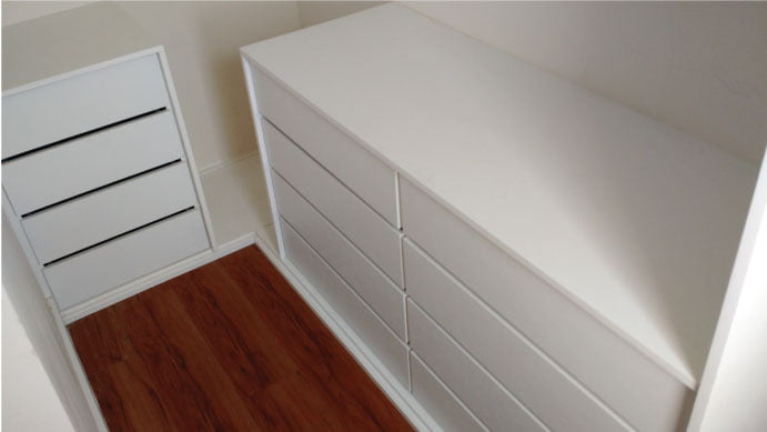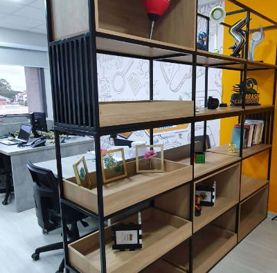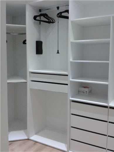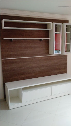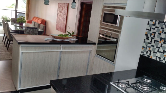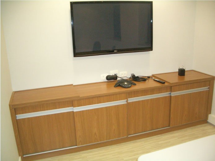 • Ferragens de alta tecnologia (corrediças telescópicas, dobradiças com amortecedor em inox, portas de correr em vidros e espelhos (várias cores), aramados, entre outros)